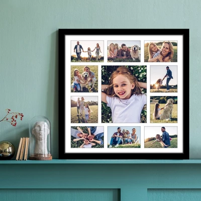 Give your memories the frame they deserve with our Americanflat 10×10 picture frame. Crafted from durable engineered wood (MDF) with a sleek, classic molding, this is more than a picture frame; it’s a game changer for your decor. The polished plexiglass front offers clarity while protecting your photos, posters, or artwork from dust and scratches. Because your favorite moments deserve nothing less than perfection. Versatility meets style with these collage frames. Designed for hassle-free installation, this square picture frame includes hanging hardware, making it a perfect fit for any wall. It’s the ideal way to showcase your cherished photos anywhere in your home or office. Display one 8×10 photo, four 5×5 photos and six 4×6 photos with the included mat or remove the mat for a 20×20 display. No matter how you style it, the timeless black finish adds a touch of elegance, instantly elevating your space. Refreshing your display has never been easier. The metal tab closures make swapping photos a breeze, so you can update your walls as often as you like. Plus, the sturdy backboard keeps everything securely in place, ensuring your memories always look their best. Why settle for boring walls when you can have a gallery at home? This photo frame is built to last, combining style and functionality to create keepsakes you’ll treasure forever. Order yours today and join thousands of satisfied customers who’ve transformed their spaces with Americanflat.