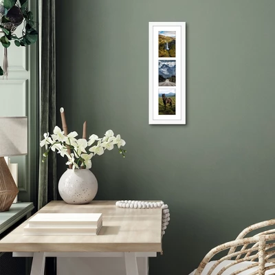 Transform your home decor with the Americanflat 6×20 collage picture frame. This picture frame is made from engineered wood (MDF) in a classic white finish. Designed to showcase your most cherished memories, the 6×20 frame features a custom white mat, allowing you to display three 4×6 photos or one 6×20 photo without the mat. Versatility is key with this gallery frame set as it comes equipped with hanging hardware and an easel stand for easy vertical or horizontal display on walls or tabletops, allowing you to effortlessly create your own gallery wall. The gallery style design seamlessly blend into any home decor, adding a touch of style to any space. Not just stylish, these white frames also offers premium quality and protection for your precious photos or artwork. The shatter-resistant glass front ensures clarity and protection against dust and scratches, while the sturdy backboard and simple turn buttons make photo loading a breeze. Choose Americanflat for all your framing needs. With our commitment to craftsmanship and protective packaging, you can be rest assured that your photo frame will arrive in pristine condition, ready to showcase your memories for years to come.