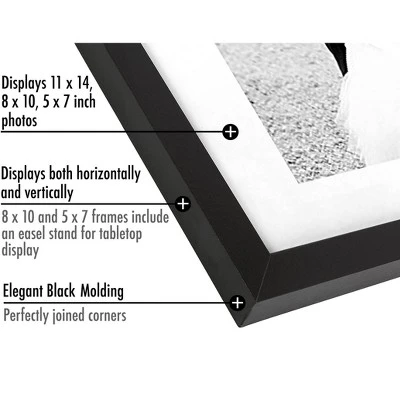 - Quality: Durable, gallery-style frames; the frame fronts have clear shatterproof glass and sturdy backboards to keep the photos in place