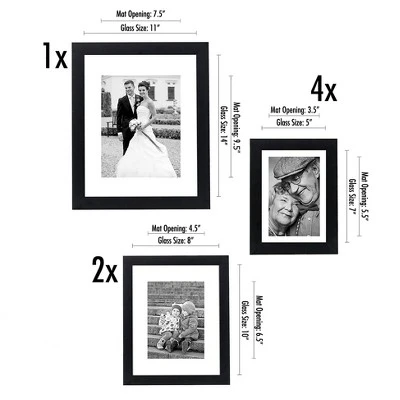 - 7, and 10-pack gallery wall set includes white beveled mats and hanging hardware for hassle-free display in both horizontal and vertical formats to hang flat against the wall