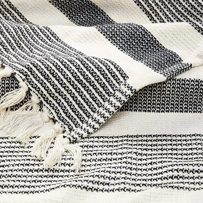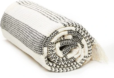 - Design: 50×60 inch Black and White Stripe cotton throw blanket with 2 inch fringes on each side